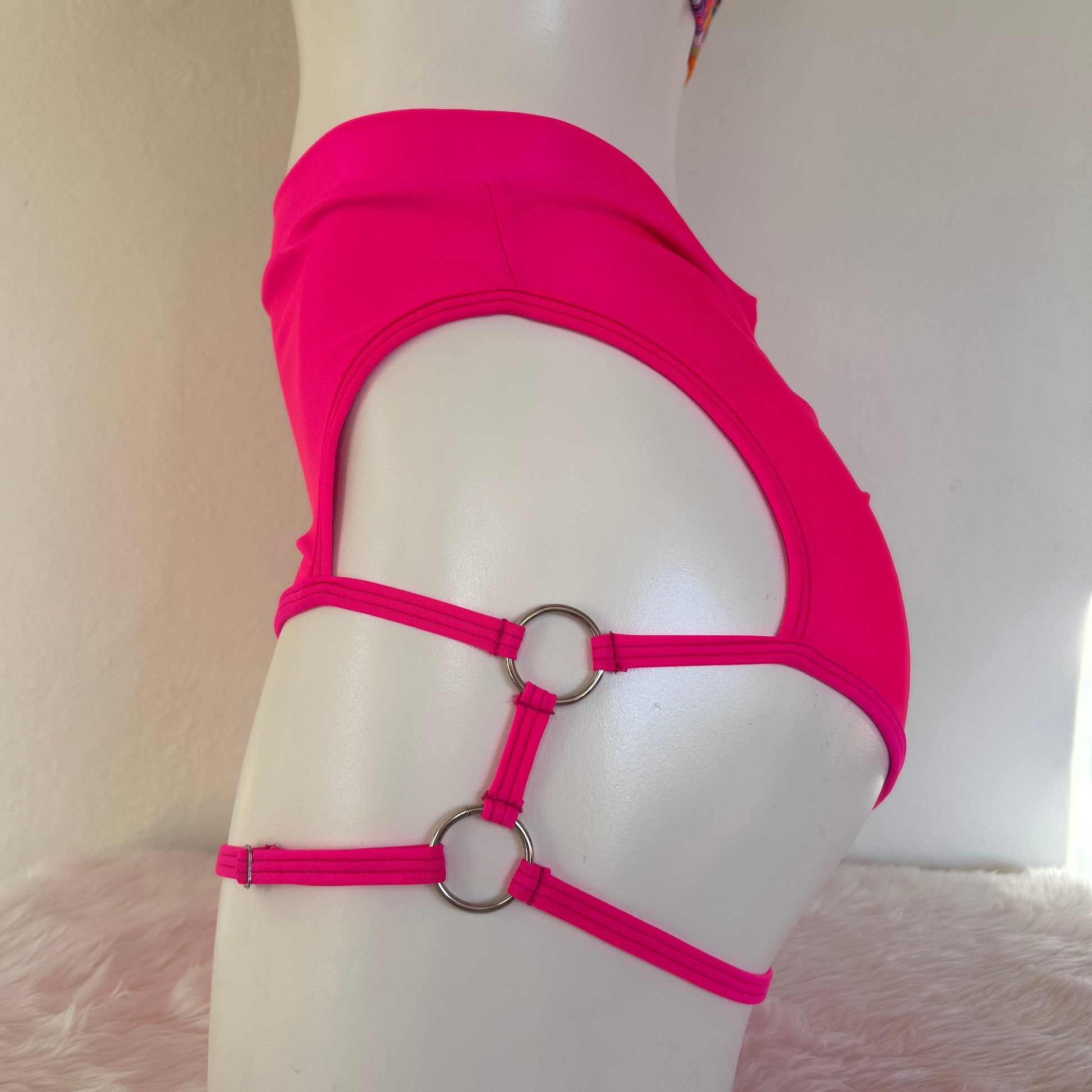 Su diseño de talle alto con doble arnés ajustable estiliza tus piernas y acentúa la silueta, ofreciendo soporte, comodidad y un toque audaz.